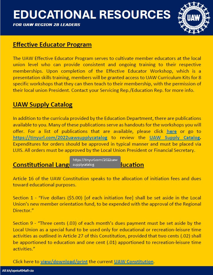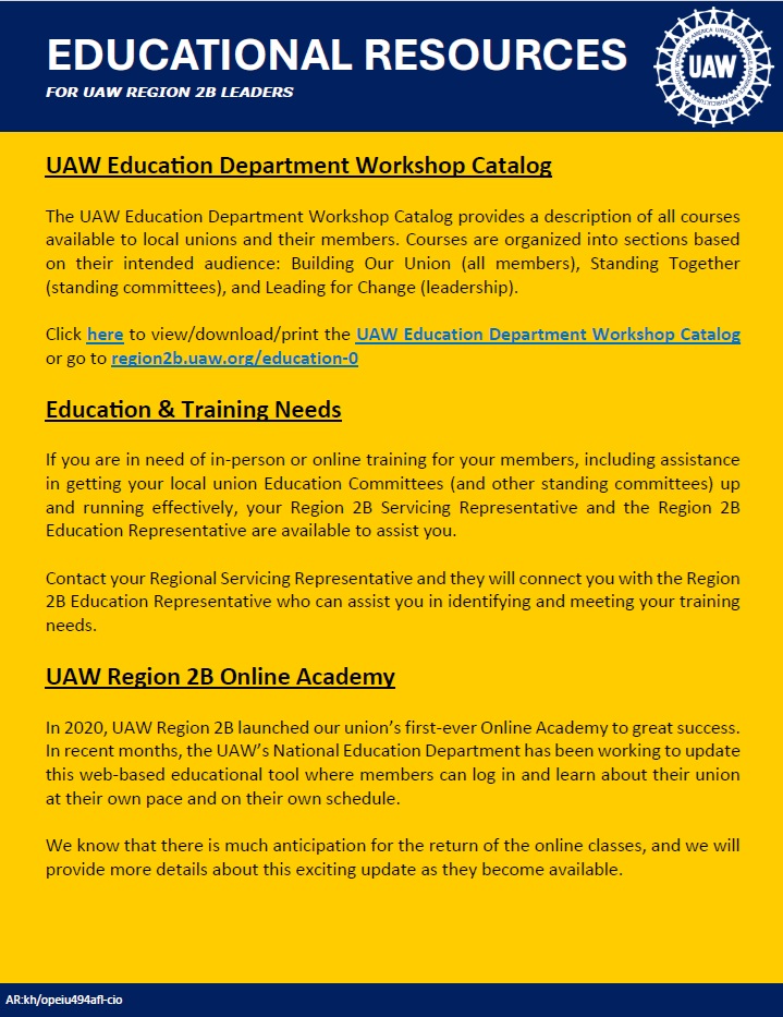 UAW Educational ResourcesBy Linda Lynch / January 13, 2026 Click here for a printer-friendly version of UAW Educational Information.