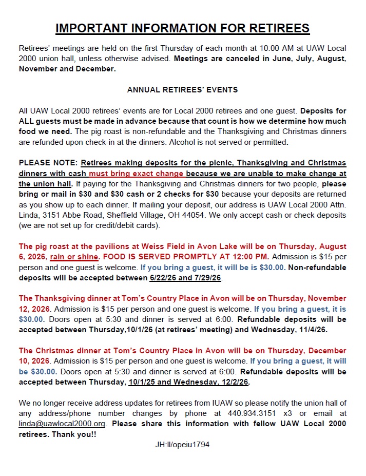 Click to print the 2026 retirees’ picnic flyer/deposit form.